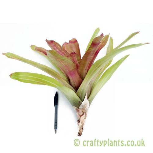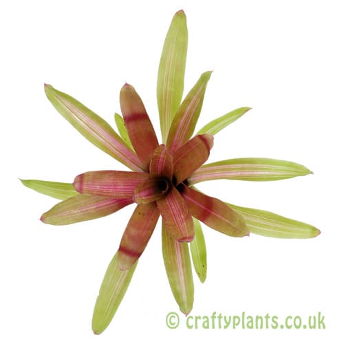 Neoregelia ‘Martin’ is a 1990’s introduction from Chester Stotak. Neoregelia ‘Martin’ grows to 12 – 16″ diameter with softly variegated leaves flushed with almost pastel pink.